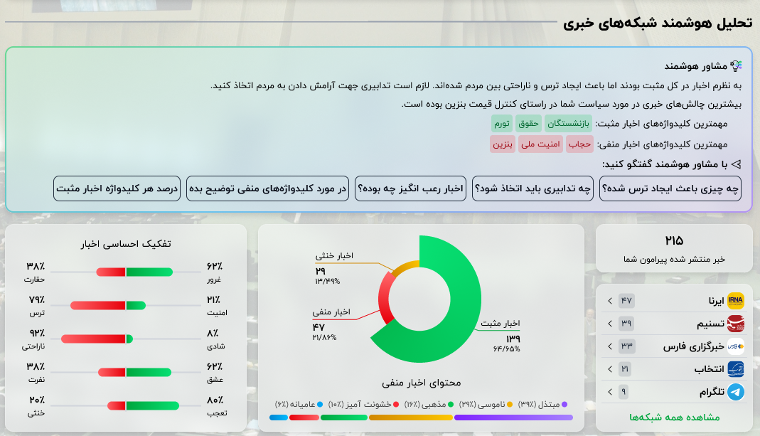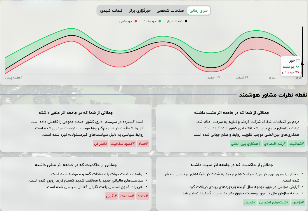 ارائهی مشاوره هوشمند برای مدیریت اخبار منفی و تقویت اخبار مثبت.