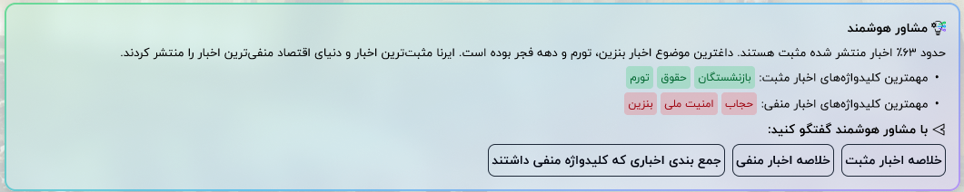 نمایش تعداد و نوع محتواهای مرتبط (مثبت، منفی، خنثی).